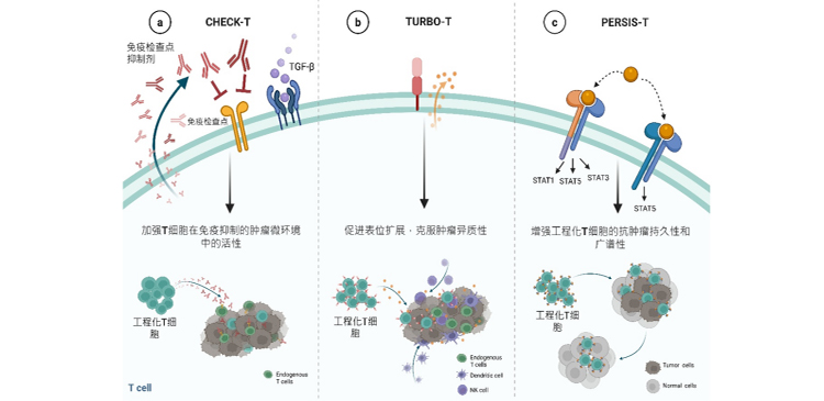 先進細胞裝甲平臺,通過裝備過繼性細胞療法(ACT)使其突破腫瘤微環(huán)境(TME)屏障及異質性,提升實體瘤治療的安全性、浸潤性和持久性。